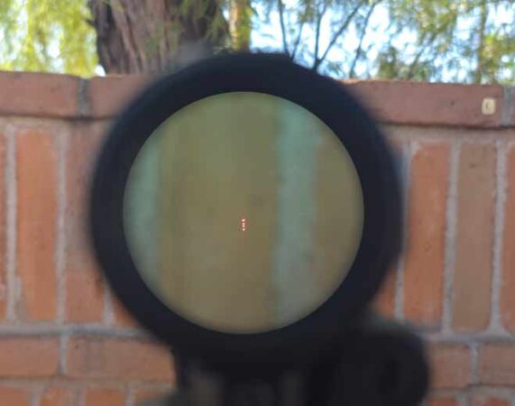 While there are a few options, my preferred unmagnified setup was the larger “donut of death”-style reticle at max brightness. For the magnified view, 3 stacked ballistic dots at a lower brightness were perfect and made hits to 400 yards with ease.